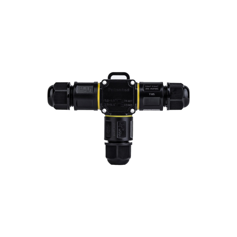 Questo connettore impermeabile è stato progettato per garantire una giunzione sicura in ambienti difficili. Ideale per l'uso all'aperto, è sommergibile e resistente a polvere e umidità.