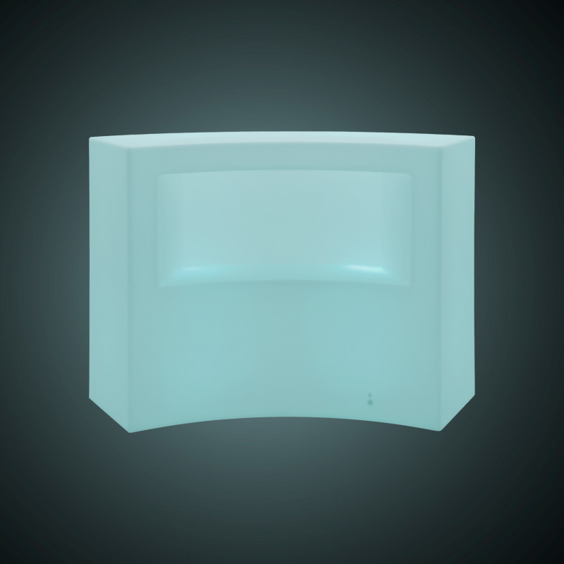 Bancone curvo a LED per esterni con 2 faretti da 5W ciascuno. Personalizzate l'illuminazione con i colori RGBW e gli effetti di cambio colore, adattandola a ogni occasione.