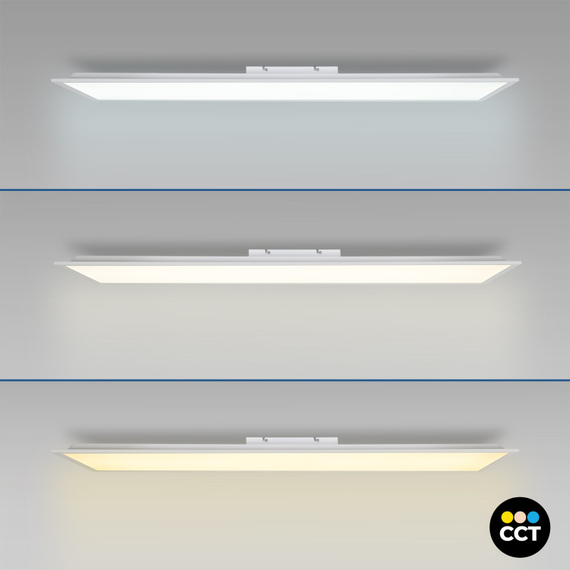 Questo pannello LED da 120 x 30 cm a montaggio superficiale combina un design elegante e moderno con l'alta efficienza e la tecnologia CCT.