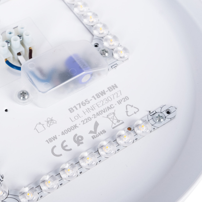 Dotata di una scheda LED SMD 2835 da 18W, con un elevato indice di resa cromatica (CRI>80), garantisce una riproduzione fedele dei colori, simile alla luce naturale.
