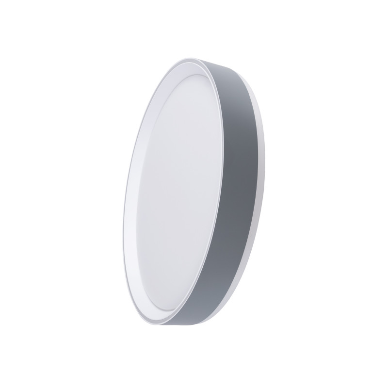 Plafoniera circolare da superficie dal design moderno ed elegante. Disponibile in bianco con montatura bianca o grigia.