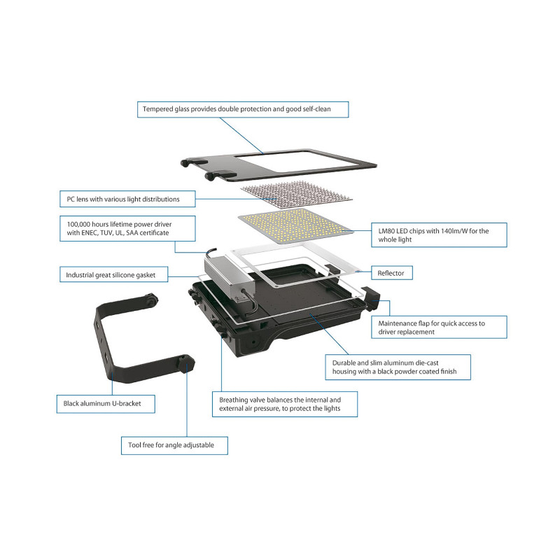 Questo proiettore LED asimmetrico da 300W per esterni è la soluzione perfetta per un'ampia gamma di applicazioni. Il suo design compatto e robusto garantisce prestazioni durature in qualsiasi ambiente.