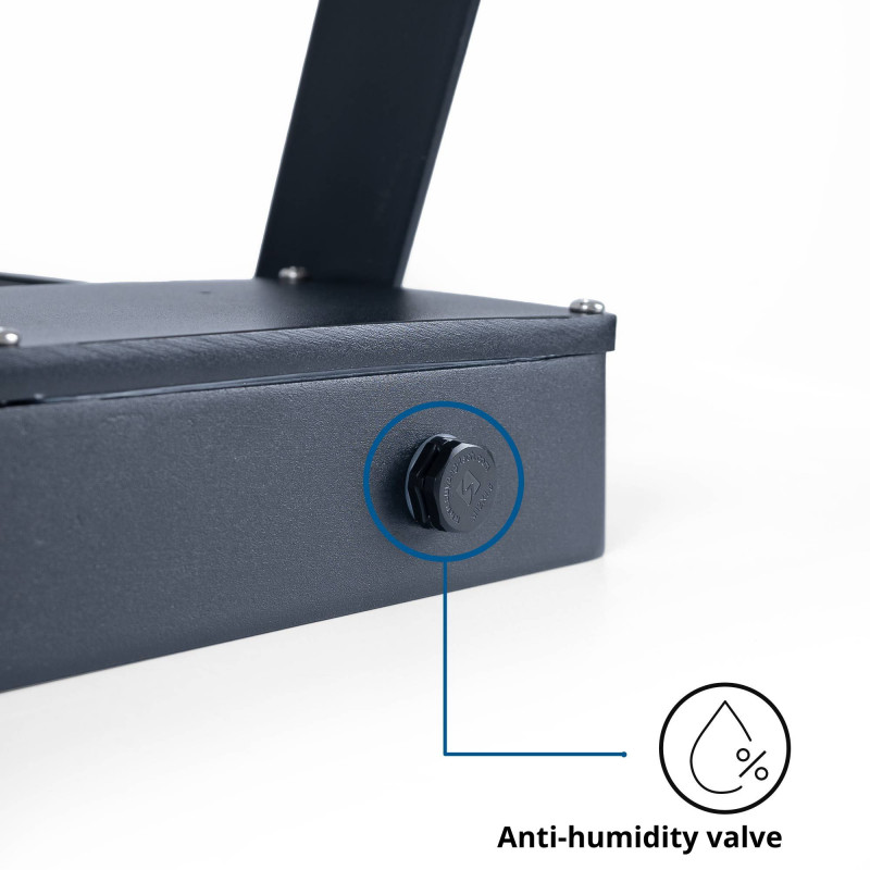- Materiali di alta qualità: realizzati in alluminio pressofuso grigio e lenti in policarbonato ad alta resistenza, garantiscono una lunga durata.