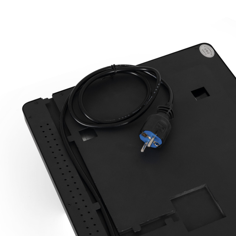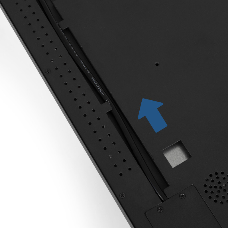 Il display ha un design elegante con una cornice in alluminio nero. I materiali di alta qualità garantiscono una lunga durata del prodotto.