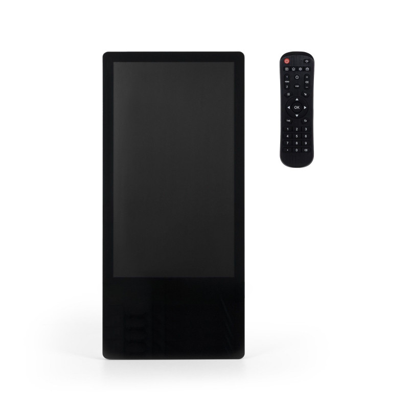 Display pubblicitario LCD da 21,5" con un design originale a forma di smartphone, semplice ed elegante. È realizzato con materiali resistenti e finiture di qualità.