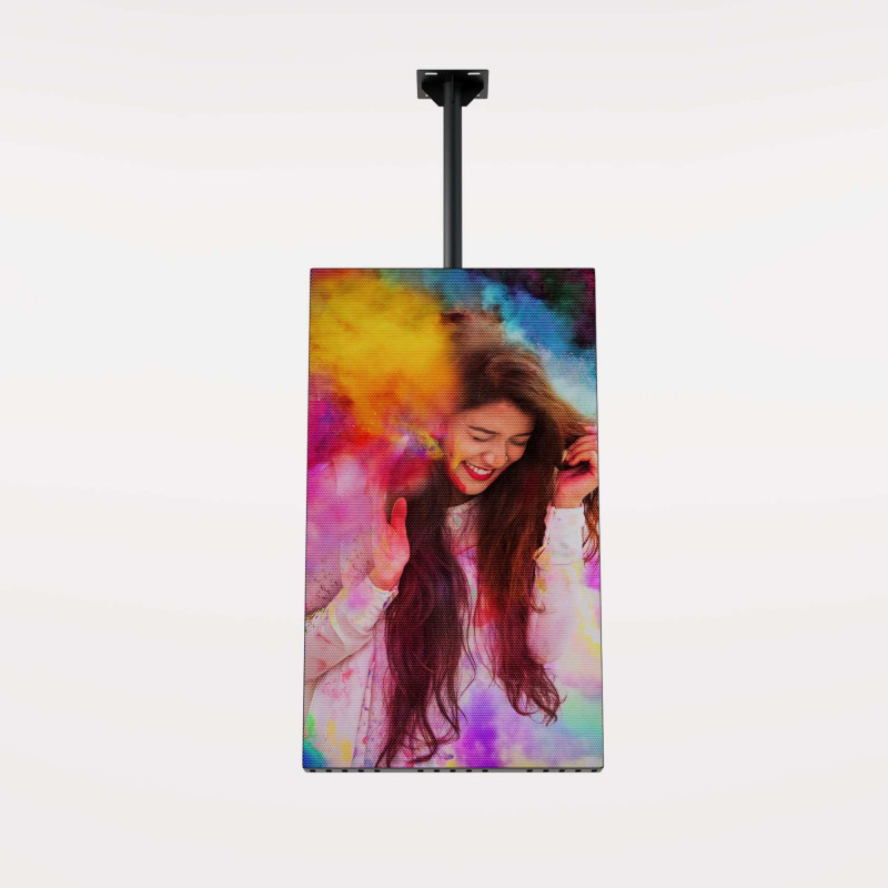 Questo innovativo dispositivo pubblicitario ha un design elegante e moderno, costituito da una struttura in metallo. Il display è composto da 14 moduli LED di passo 2,5 di manutenzione frontale.