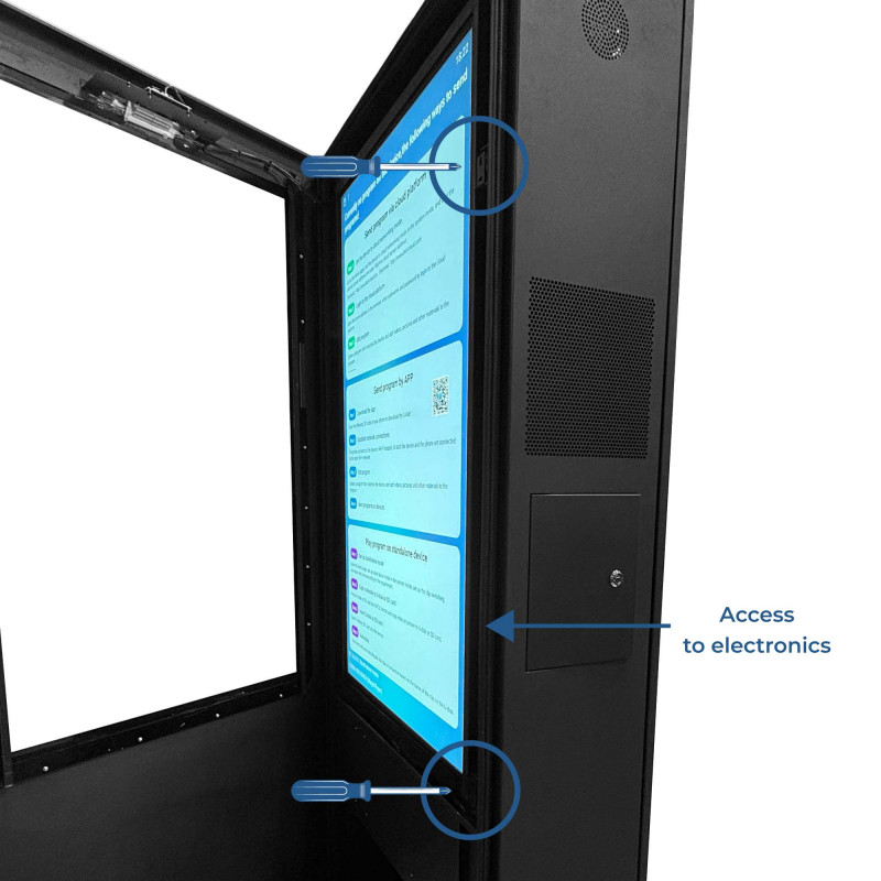 Al suo interno è incorporato un orologio che consente di configurare l'accensione e lo spegnimento automatico del totem. È anche possibile programmare questi orari tramite un'applicazione.