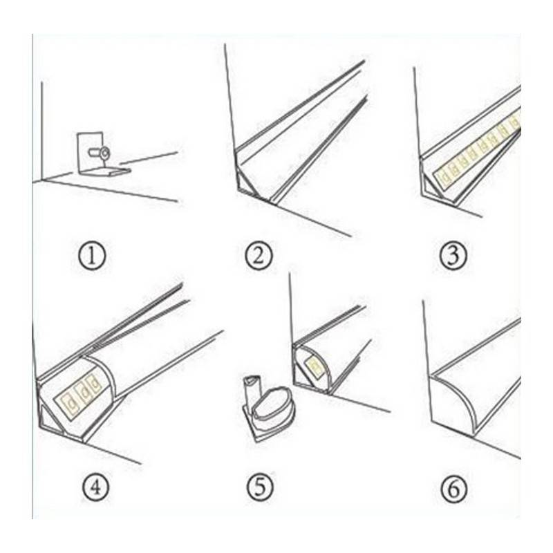 - Installazione ad angolo: progettato per essere montato in superficie negli angoli di pareti e soffitti, fornendo un'illuminazione indiretta e decorativa.