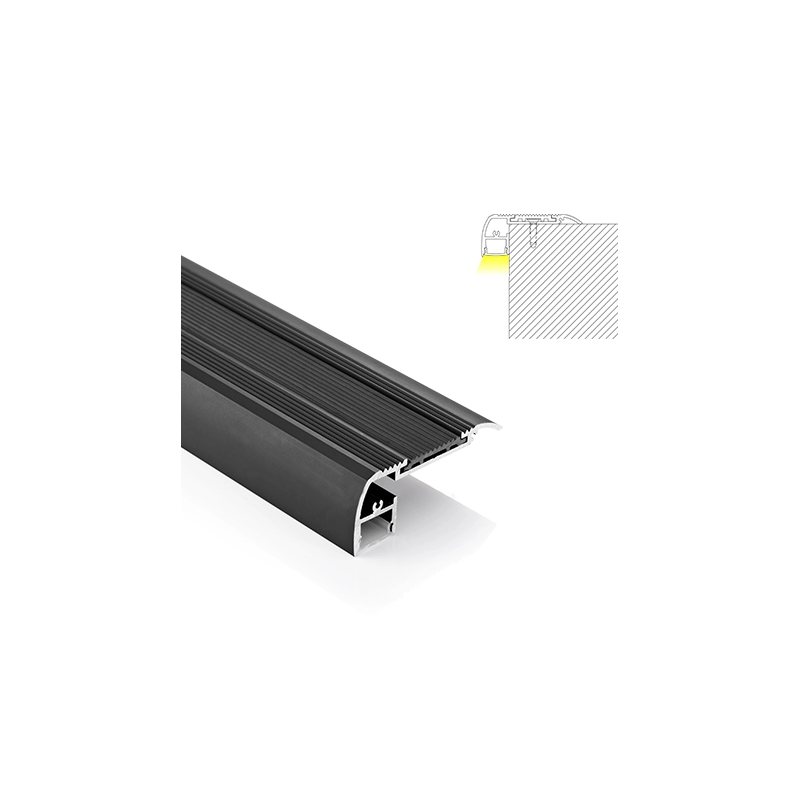 Questo profilo per scale in alluminio è ideale per progetti domestici e commerciali. Perfetto per strisce LED flessibili o rigide di larghezza fino a 12 mm.