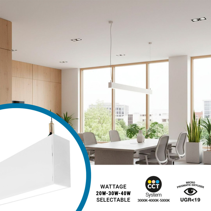 Lampada lineare LED CCT - Bidirezionale - Sospensione - Potenza regolabile 20W/30W/40W - 120cm - UGR 19