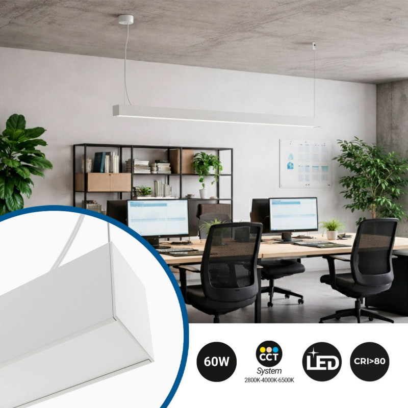 Lampada lineare LED DOB CCT - 60W - 180cm - 120lm/W - PVC - Sospensione