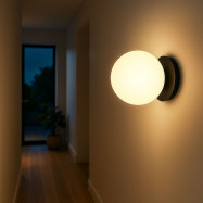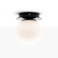 - Diseño minimalista: Compuesta por una esfera de cristal opalino sobre una base de aluminio en acabado dorado o cromo, se adapta a la perfección a interiores clásicos, retro o modernos.