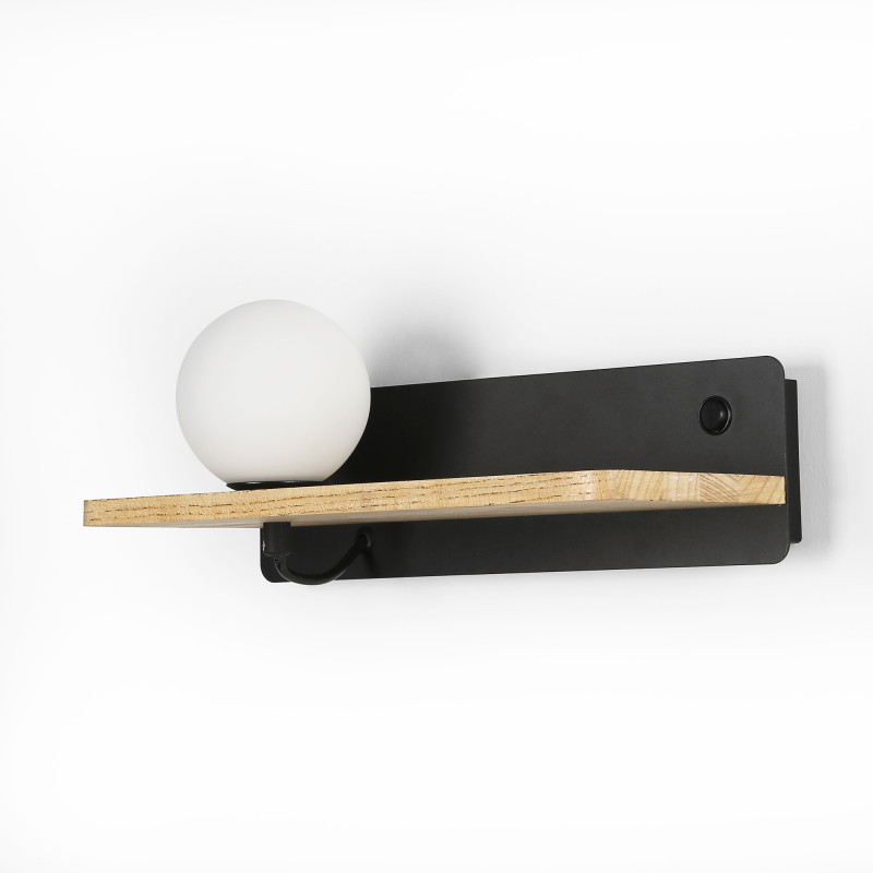 El aplique de pared "Nonna" se destaca por su estética contemporánea y su funcionalidad avanzada, ideal para integrarse en cualquier ambiente moderno. Cuenta con una base fabricada en aluminio en acabado negro y un elegante estante de madera natural con terminaciones de alta calidad.