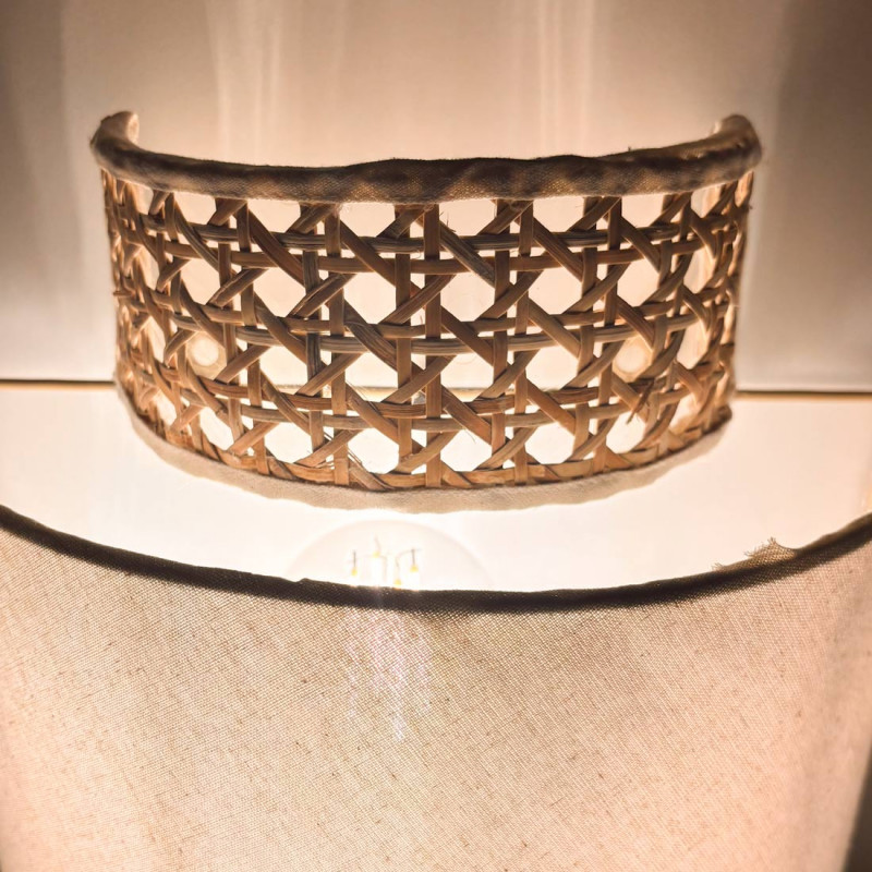 Aplique de pared de mimbre y tela "HANS" - E27 - Interruptor y enchufe