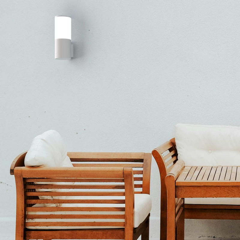 Disponible en negro, blanco y gris, con difusor opal. Apto para uso exterior (IP55).