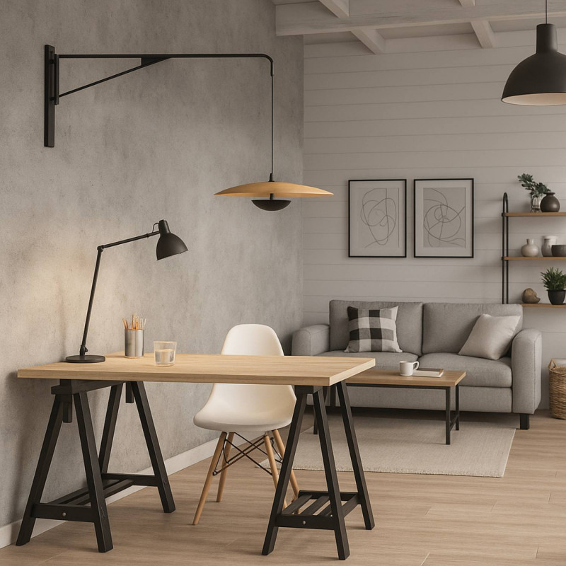 Este aplique destaca por su diseño pivotante y materiales de alta calidad. Su estética retro-industrial y acabados cuidados le otorgan personalidad y versatilidad.