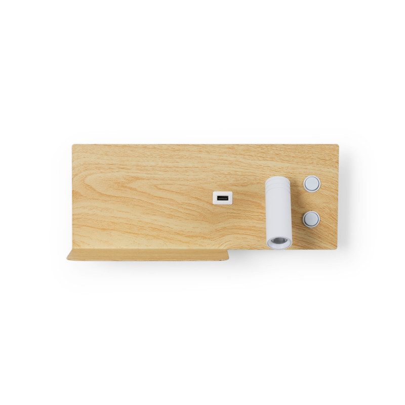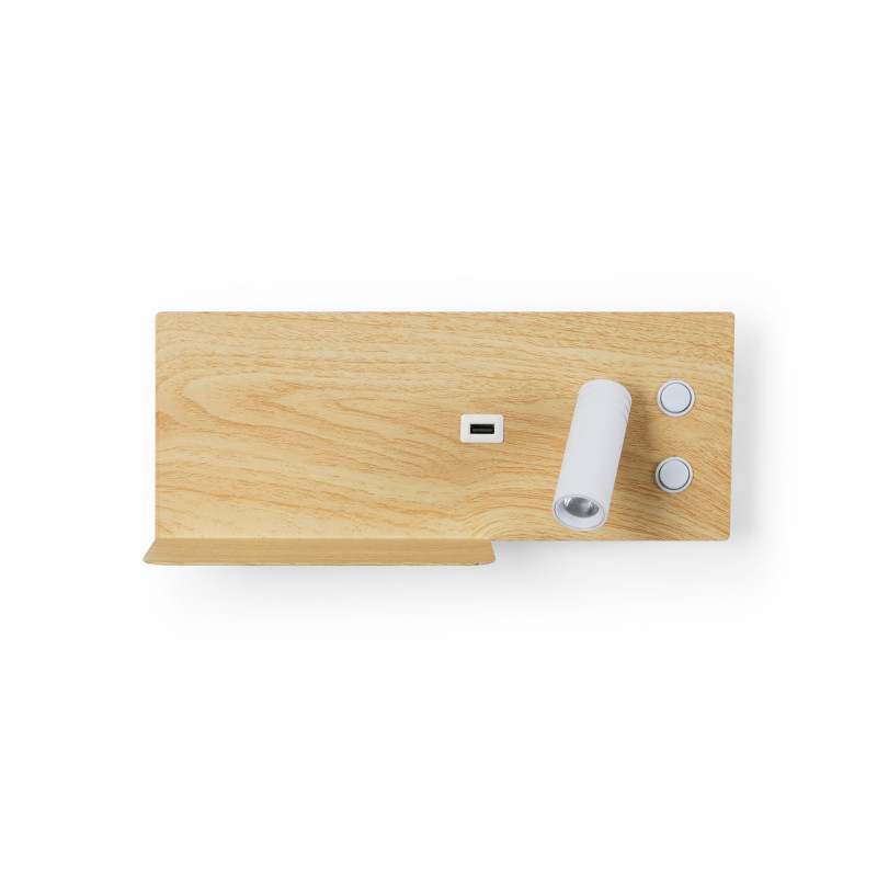 El foco orientable se ubica en el lado derecho del aplique (Ref: LN1512-USB con foco a la izquierda, ver productos relacionados).