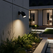 Este aplique orientable ofrece una solución eficiente y estilizada. Su cabezal ajustable permite dirigir la luz con precisión, creando una iluminación atmosférica ideal para resaltar zonas exteriores.