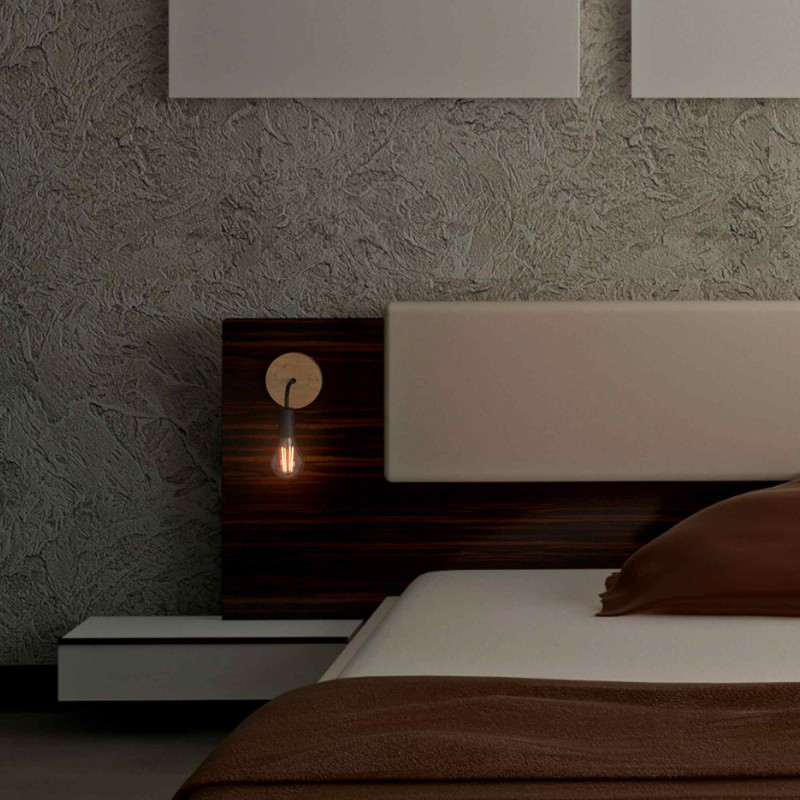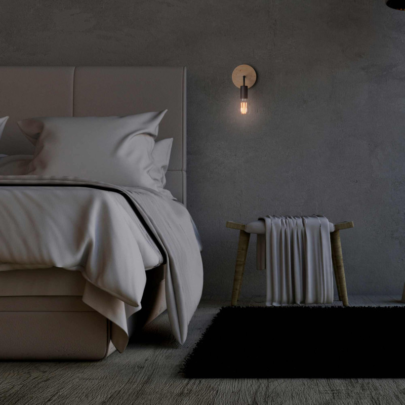 Admite una bombilla E27 (no incluida) con una potencia máxima de 60W. Sugerimos utilizar una bombilla LED de filamento para realzar la estética del aplique.