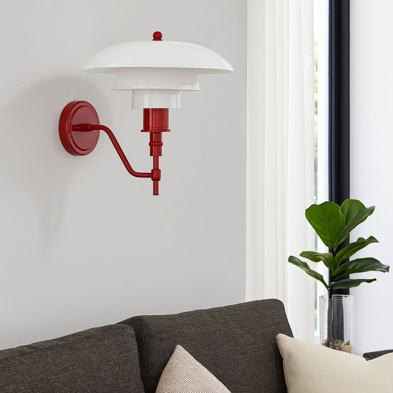 Lámpara de pared de diseño exquisito, con triple pantalla de cristal opal y base en aluminio.