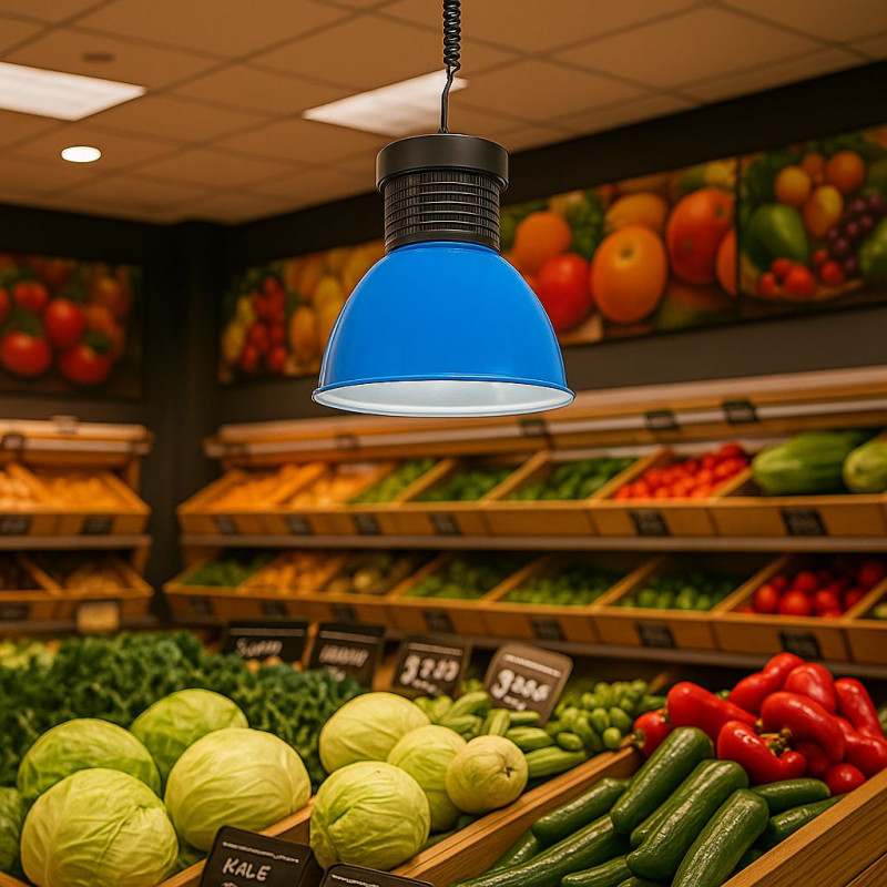 La campana LED 30W. nos proporciona una iluminación focalizada de una gran calidad gracias a su chip integrado especialmente diseñado para verduras. Su chip especializado hace que las verduras luzcan frescas y llamativas para los consumidores. Además de ello, su ángulo luminoso lo hace perfecto para aplicaciones en verdulerías, haciendo el producto altamente vistoso.