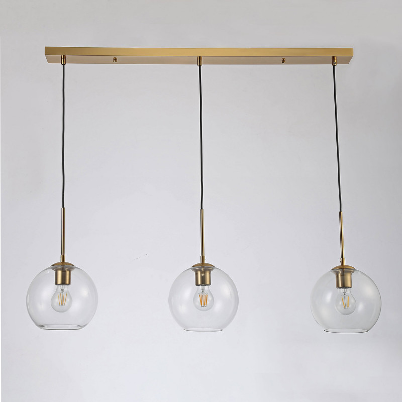 La lámpara colgante "Merce" cuenta con tres pantallas fabricadas en cristal transparente de alta calidad, por lo que permite destacar las bombillas y ofrecen una iluminación directa.