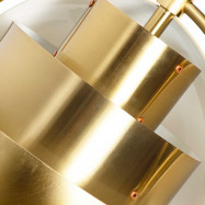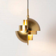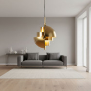 - Diseño único: Dos pantallas semiesféricas sostenidas por un anillo metálico permiten orientar la luz hacia arriba, abajo o en ángulos personalizados, creando un efecto asimétrico decorativo.