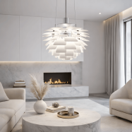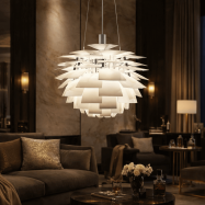 De gran personalidad, esta lámpara combina un diseño refinado, materiales de alta calidad y una iluminación cautivadora, siendo una elección destacada para diversos espacios interiores como salas de estar, comedores, restaurantes u hoteles.