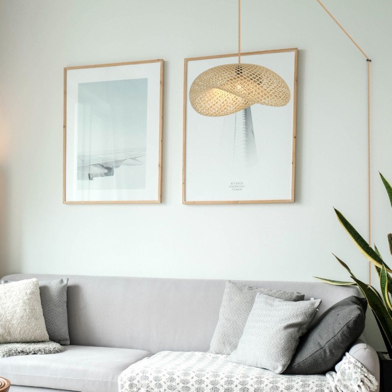 Esta lámpara hecha de fibras naturales aporta un sello personal y distintivo, nos conecta con el entorno y constituye una opción ecológica.