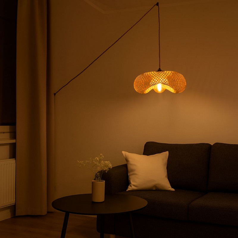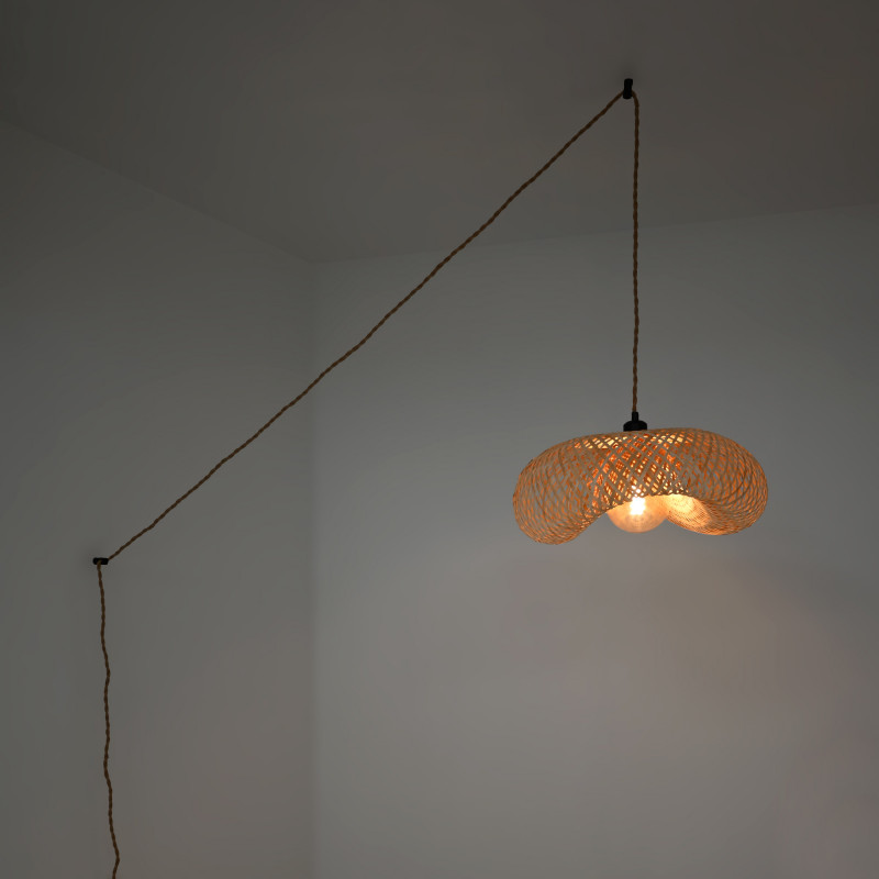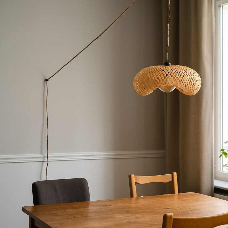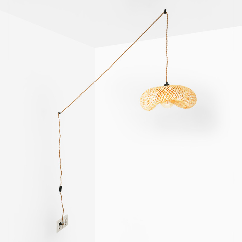 - Instalación flexible: Incluye cable regulable con dos ganchos descentralizadores para distintas configuraciones. Incorpora interruptor y enchufe Schuko, ideal para espacios sin punto de luz cercano. Disponible en negro, blanco y cuerda natural.