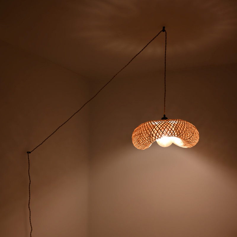 Lámpara colgante de mimbre "FREY" - Con interruptor y enchufe - E27