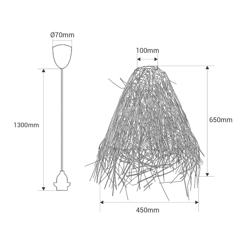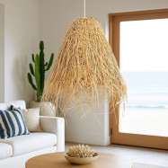 Confeccionada en fibras naturales, esta lámpara aporta autenticidad y carácter a la decoración, al mismo tiempo que se presenta como una alternativa sostenible y respetuosa con el medio ambiente.