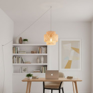 Esta lámpara hecha de fibras naturales aporta un sello personal y distintivo, nos conecta con el entorno y constituye una opción ecológica. Pantalla con diámetro de Ø40cm.