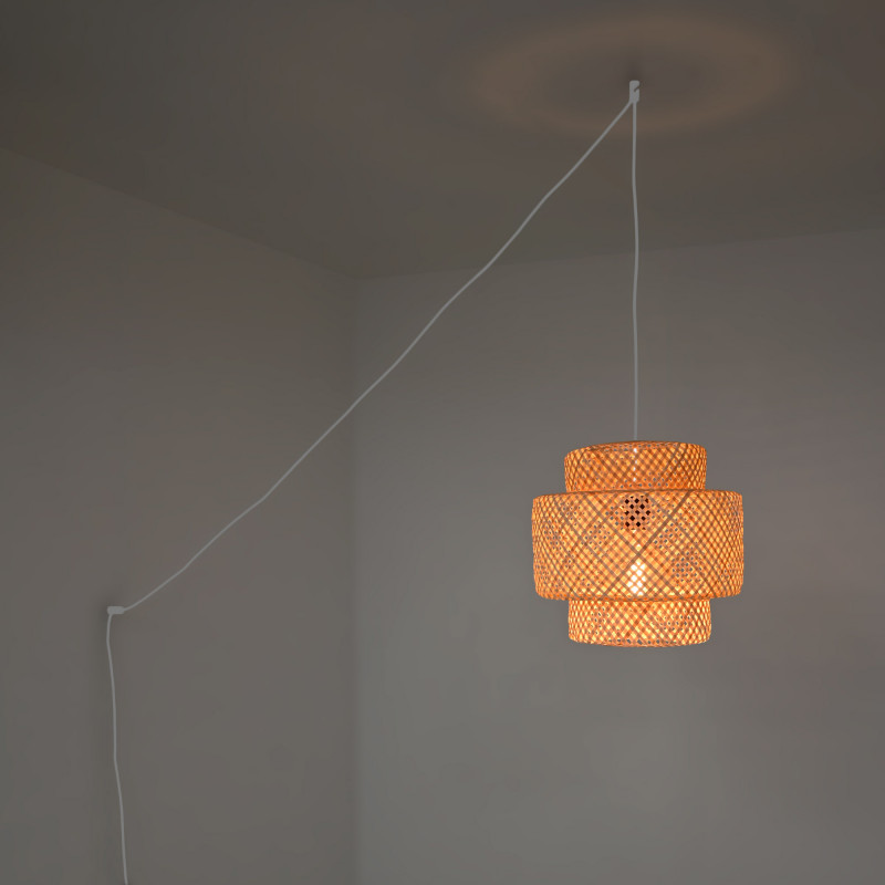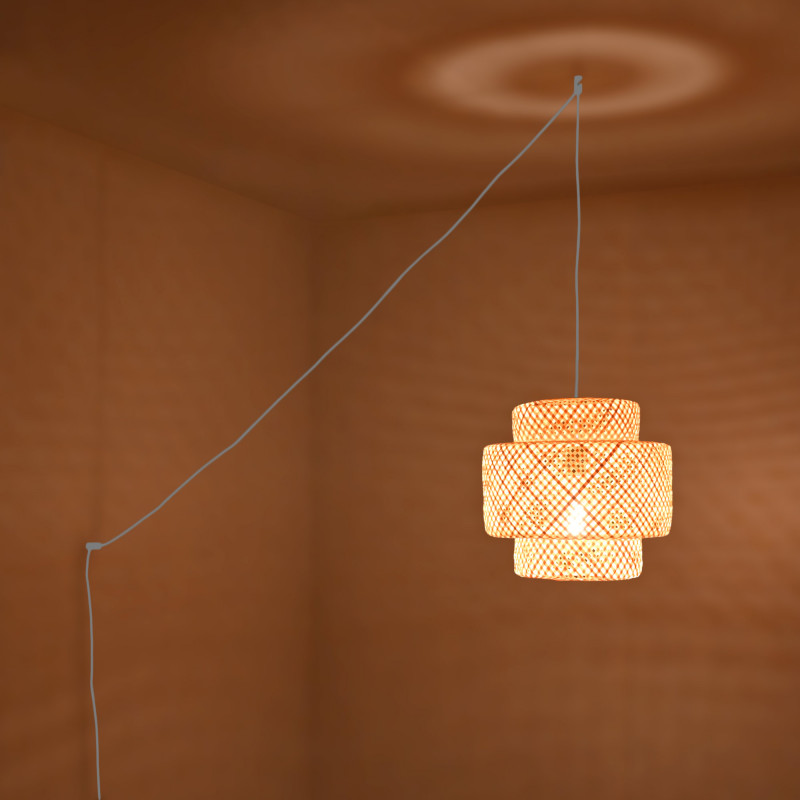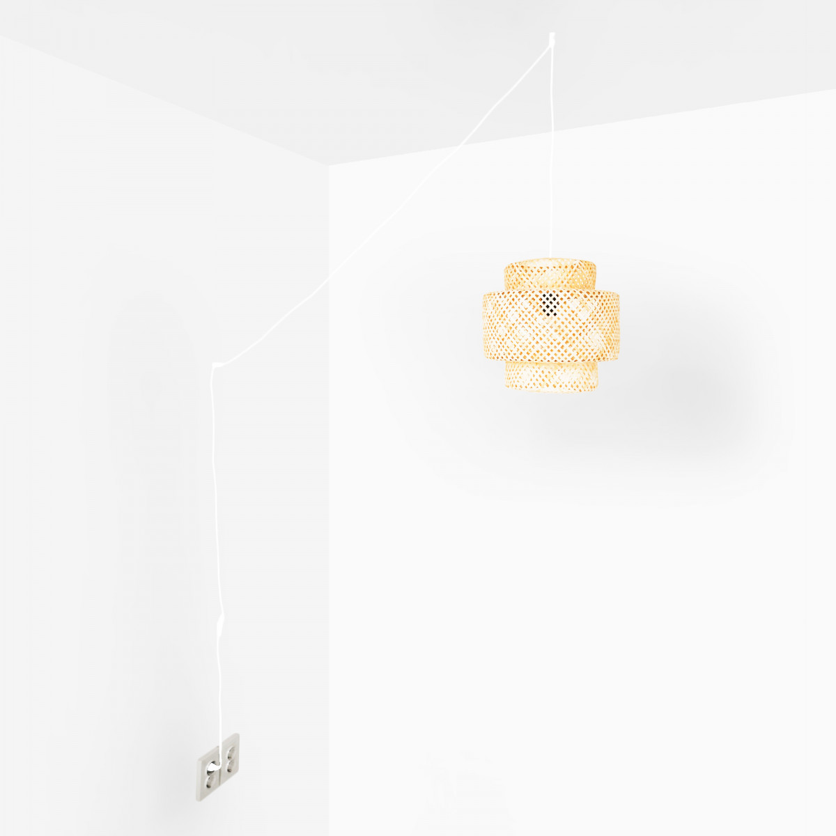 - Instalación flexible: Incluye cable regulable con dos ganchos descentralizadores para distintas configuraciones. Incorpora interruptor y enchufe Schuko, ideal para espacios sin punto de luz cercano. Disponible en negro, blanco y cuerda natural.