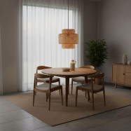 Su entramado permite difundir la luz de manera sutil y cálida, realzando a su vez las texturas del material. El efecto resultante es un ambiente acogedor y reconfortante.