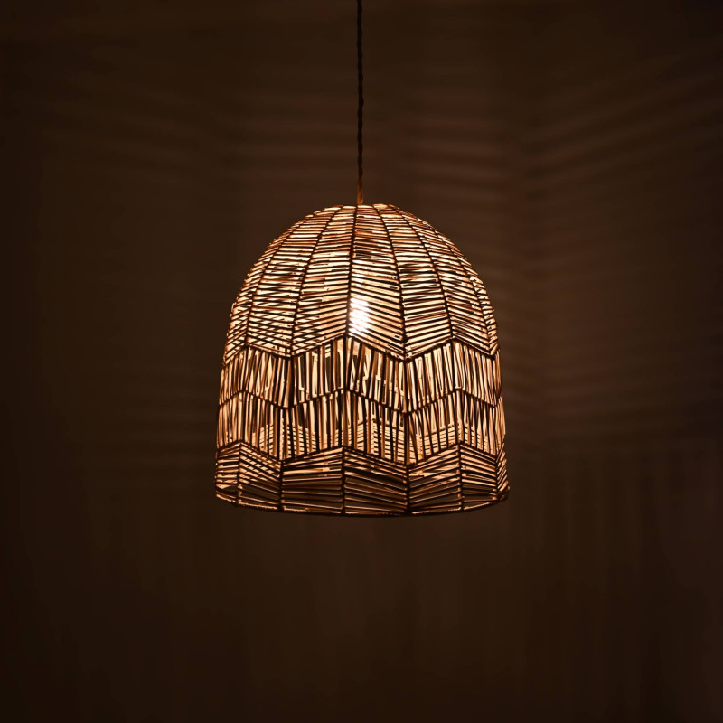 Esta lámpara hecha de fibras naturales aporta un sello personal y distintivo, nos conecta con el entorno y constituye una opción ecológica. Pantalla de 35 cm de diámetro.