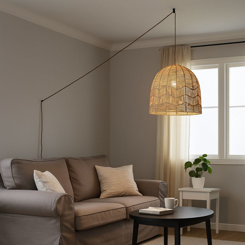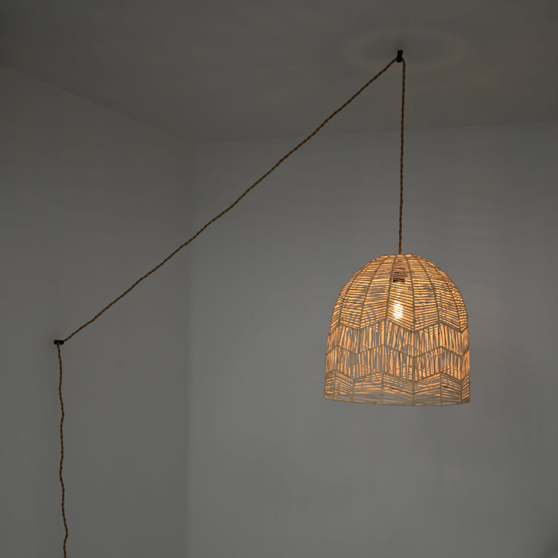 • Instalación flexible: Incluye cable regulable con dos ganchos descentralizadores para distintas configuraciones. Incorpora interruptor y enchufe Schuko, ideal para espacios sin punto de luz cercano. Disponible en negro, blanco y cuerda natural.