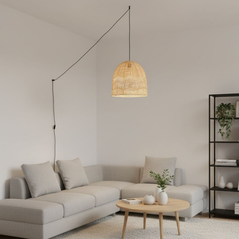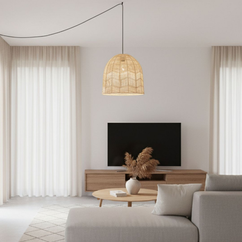 Lámpara colgante de mimbre "NORMA" - Ø45cm - Con interruptor y enchufe - E27