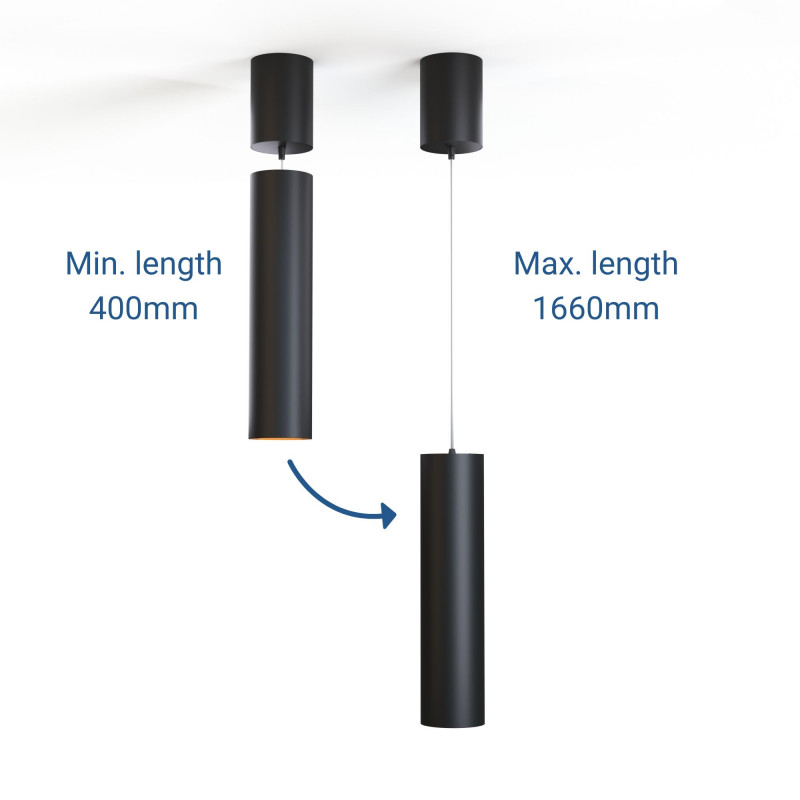 - Cable retráctil: Permite instalarla como lámpara colgante o como aplique de techo. Longitud máxima del cable: 126cm.