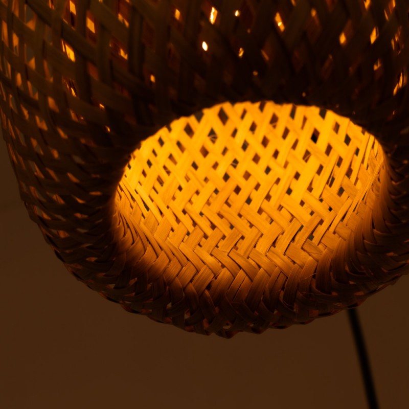 La lámpara "Trisa" está fabricada a mano en mimbre, cuidando cada detalle para conseguir un producto con acabados de alta calidad. Su entramado crea un hermoso juego de luces y sombras con el paso de la luz, dando lugar a ambientes armoniosos y acogedores.