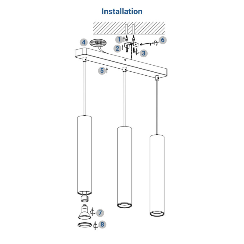 Esta lámpara triple presenta un diseño tubular, moderno y minimalista. Proporciona una iluminación focalizada perfecta para áreas específicas como mesas, barras y cocinas.