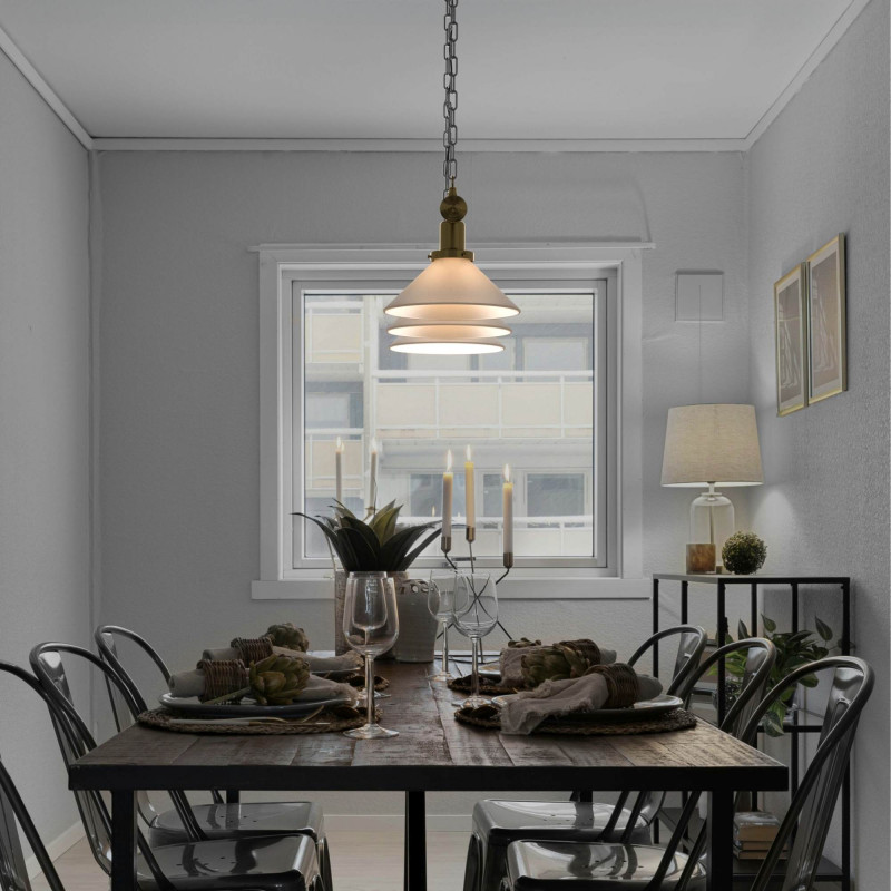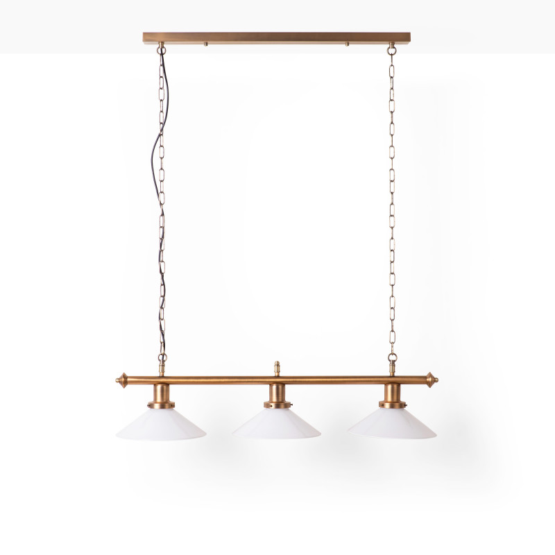 - Soporte de latón envejecido: Sistema de suspensión robusto que garantiza estabilidad, con un acabado duradero.