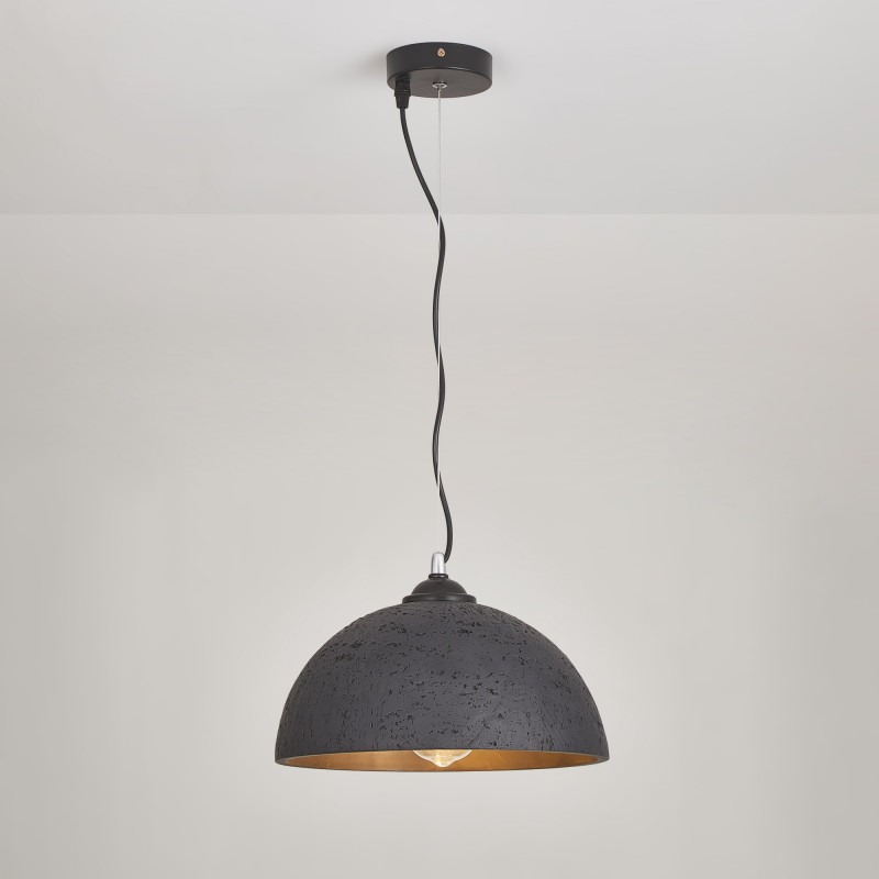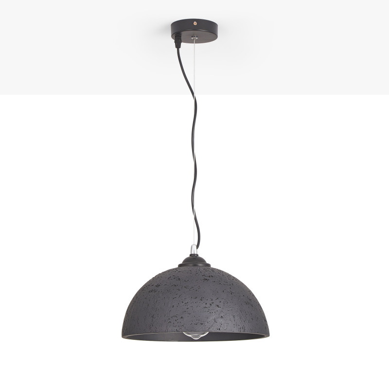 Lámpara suspendida fabricada en resina con acabado rugoso. Su diseño artesanal y tonos neutros aportan calma y armonía visual a cualquier ambiente.