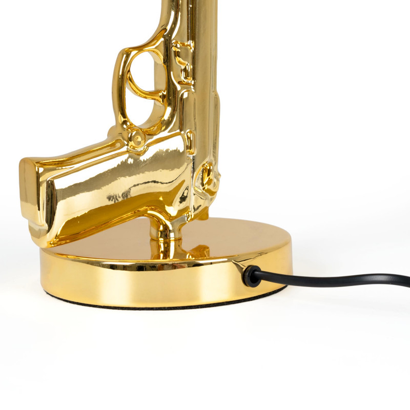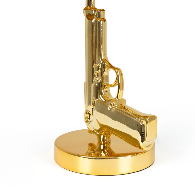 Esta lámpara de mesa rompe con lo convencional al transformar la silueta de una pistola Beretta en una pieza de iluminación única y sofisticada. De estética provocadora, es una pieza perfecta para quienes buscan diseños fuera de lo común.