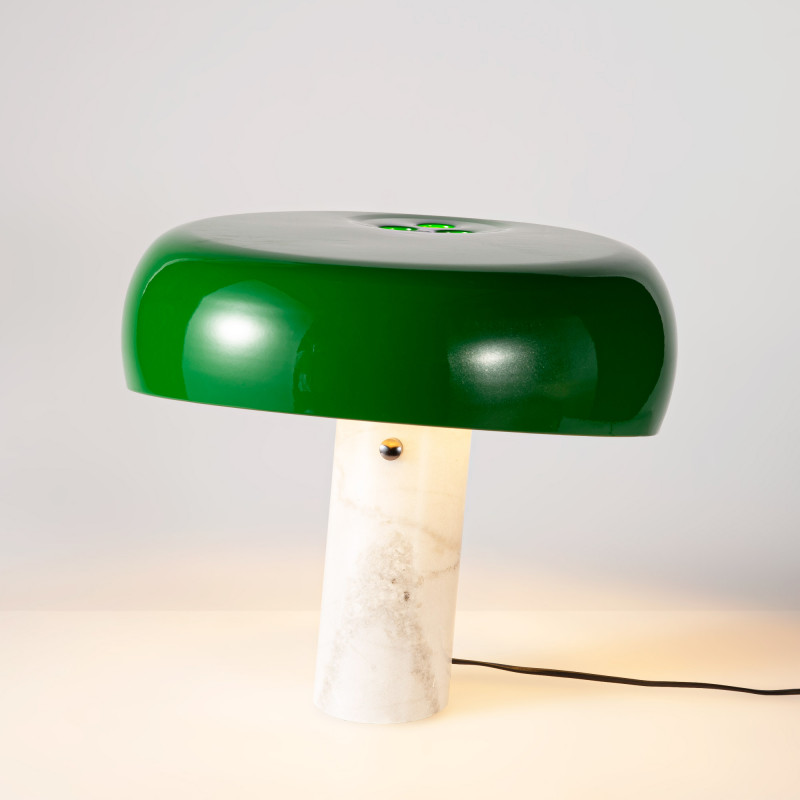 • Materiales premium: Pantalla de metal lacado, difusor inferior en cristal y base de mármol blanco para una durabilidad y elegancia excepcionales.
