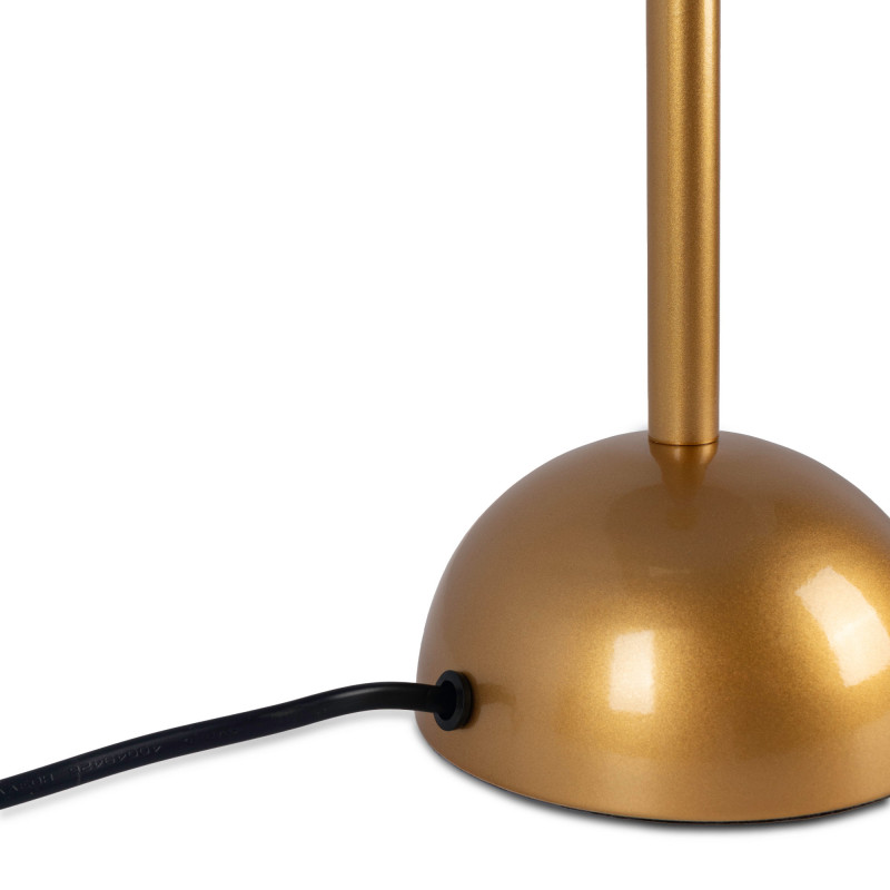 Dispone de una base con un pie delgado y una pantalla en forma de media esfera que recuerda a una flor en plena eclosión, con suaves curvas y líneas limpias que añaden un toque de gracia a cualquier espacio.