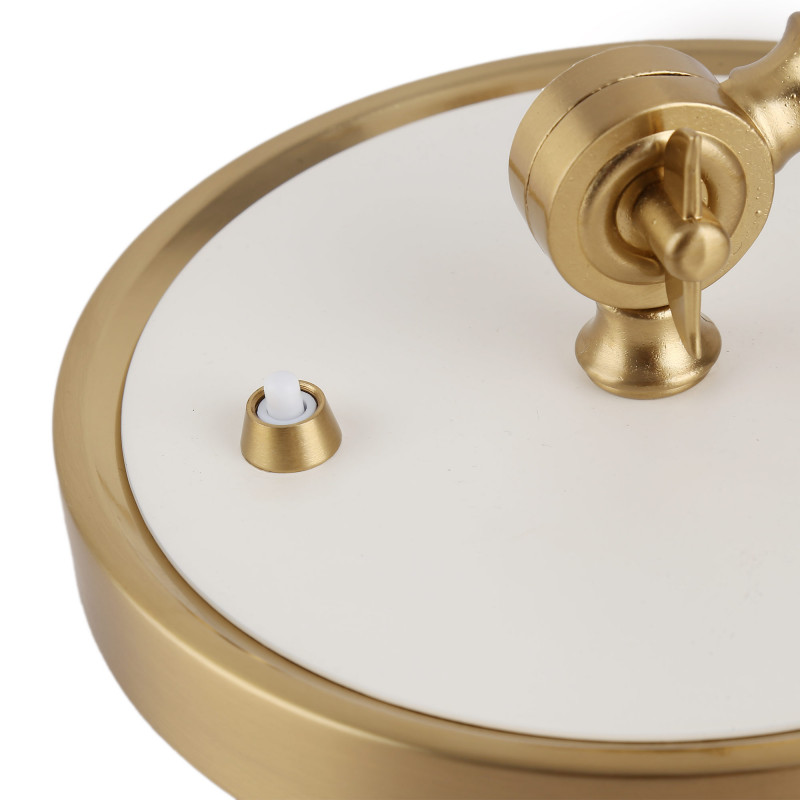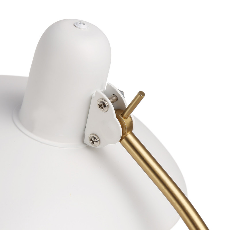 Fabricada en aluminio de alta calidad, dispone de una elegante estructura dorada y una pantalla en acabado blanco o negro.