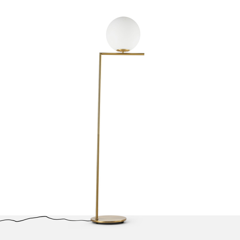 - Material premium: Estructura de aluminio con acabado dorado mate y pantalla esférica de cristal opalino (ø30cm).