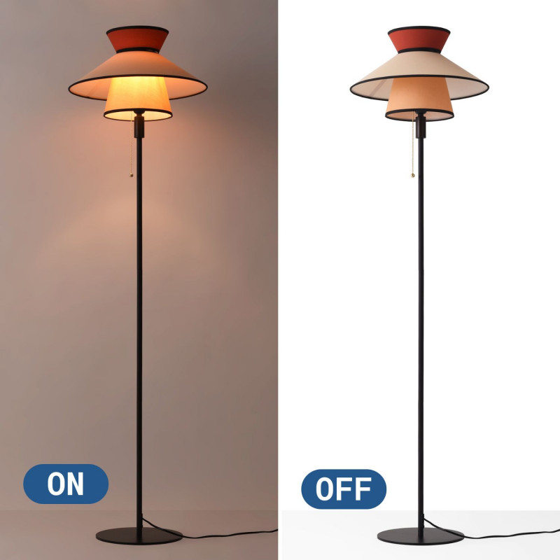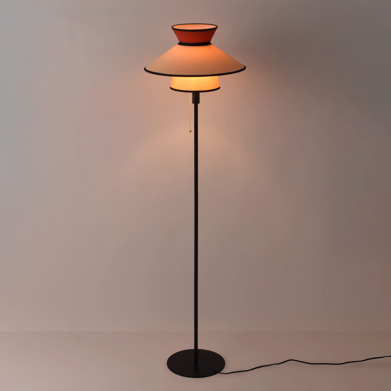 Con su diseño elegante de pantallas superpuestas y silueta esbelta, "CORA" es una lámpara de pie decorativa que aporta calidez y personalidad a cualquier estancia.