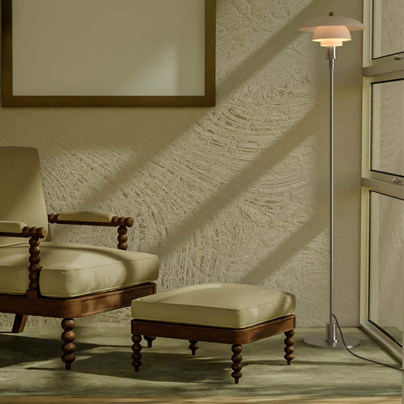 La lámpara de pie "Marshal" está inspirada en una clásica lámpara de los años 20. Se destaca por su estética y calidad excepcional.